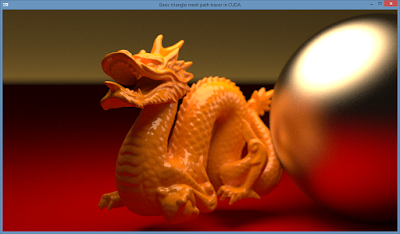 For the purpose of clarity and to keep the code concise (as there's quite a lot of code required for BVH construction), I removed quite a few nice features from Thanassis' code which are not essential for this tutorial, such as multithreaded BVH building on the CPU (using SSE intrinsics), various render modes (like point rendering), backface culling, a scheme to divide the image in rendertiles in Morton order (along a space filling Z-curve) and some clever workarounds to deal with CUDA's limitations such as separate templated kernels for shadow rays and ambient occlusion.